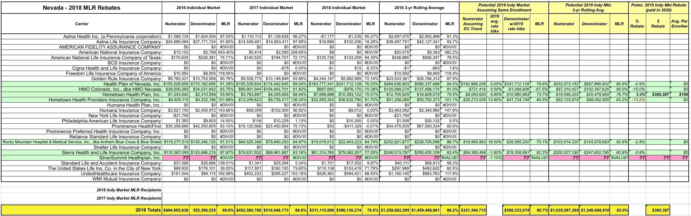 Exclusive! Nevada: 2018 MLR Rebate Payments (& potential 2019 rebates)