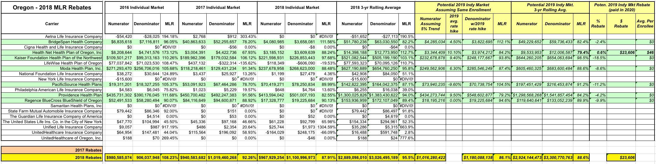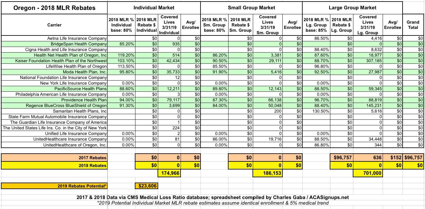 Oregon: Zilch on the MLR rebates in the Beaver State.