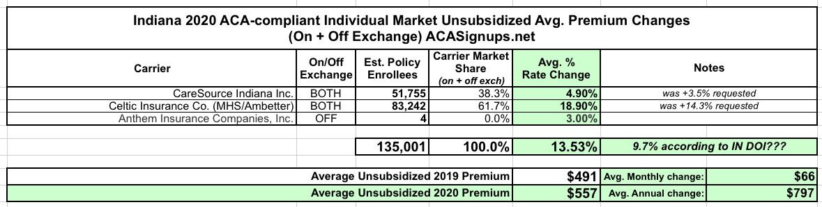 Indiana: *Final* avg. 2020 #ACA premium rate hikes: IN DOI says 9.7%. The math says 13.5%.