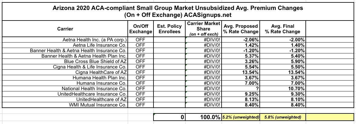 Arizona: *Final* avg. 2020 #ACA premium rate change: 0.2% *decrease*