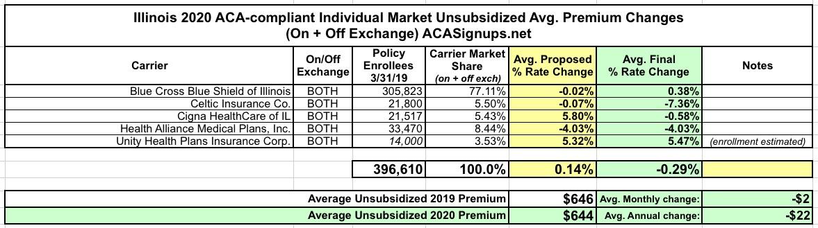 Illinois: *Final* avg. 2020 #ACA premiums: 0.3% decrease