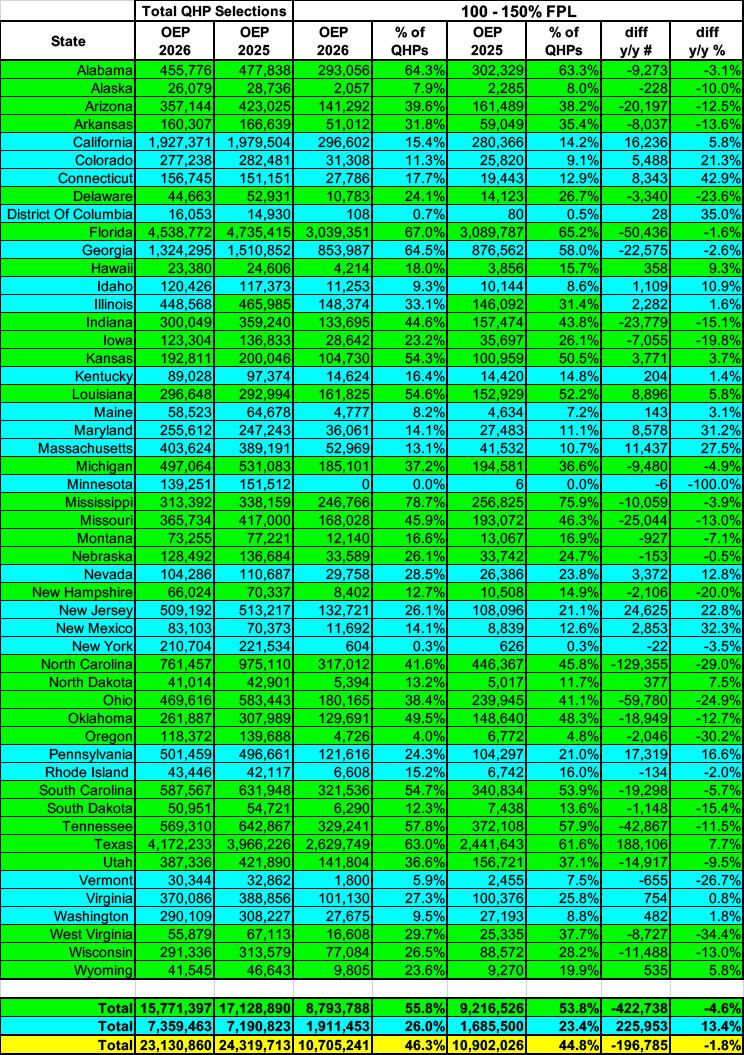 Unfortunately, only 9.85 million enrollees chose Silver this year...and even then, not all of them are in the 100 - 200% FPL range, which means there's quite a few who left hundreds or thousands of dollars in financial assistance for out of pocket costs on the table...except that with the enhanced federal tax credits having expired, many of these folks may have had no choice due to the increase in their premiums.