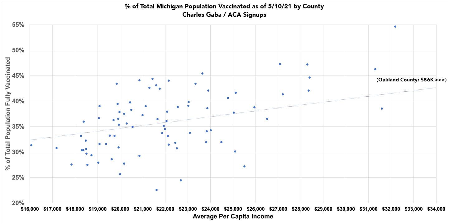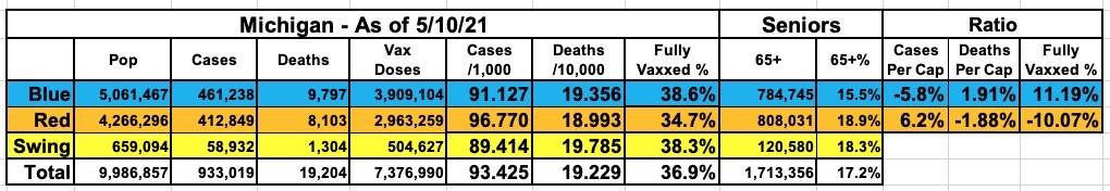 ...On the vaccine front, meanwhile...yep, as of today, Michigan's handful of large Blue counties (the 12 counties which voted for Biden last fall have 55% of the population) have vaccinated 36.2% of their residents, while the other 71 Trump-voting counties have only vaccinated 32.9% of theirs.