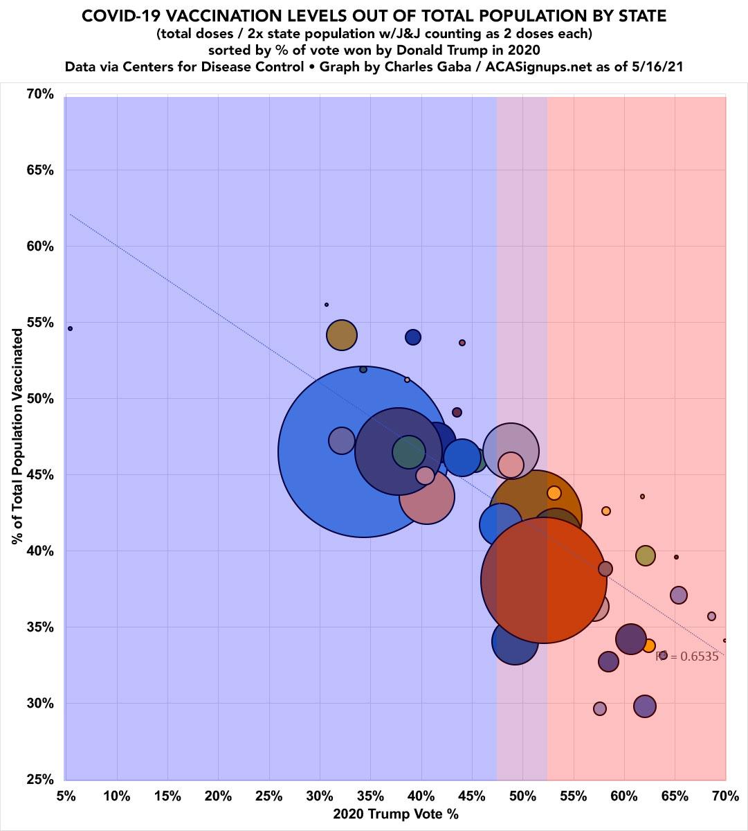 So over the weekend, I posted a simple scatter plot graph which displayed the current COVID-19 vaccination rates across all 50 states +DC according to what percent of the 2020 Presidential vote was won by Donald Trump.