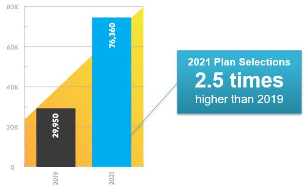 - The surge is more than 2.5 times higher than a traditional special-enrollment period, reflecting an increase of more than 46,000 people, compared to the same time period in 2019.