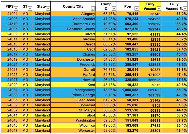 Maryland: #COVID19 vaccination rates by county & partisan lean