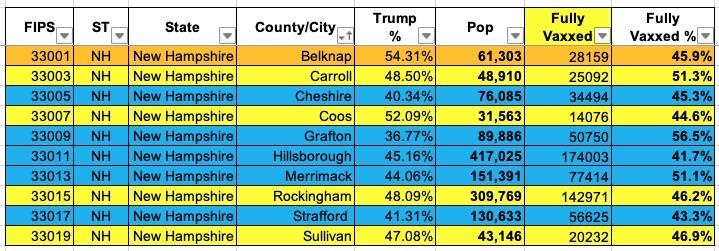 New Hampshire: #COVID19 vaccination rates by county & partisan lean