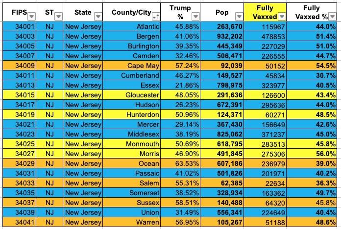 New Jersey: #COVID19 vaccination rates by county & partisan lean