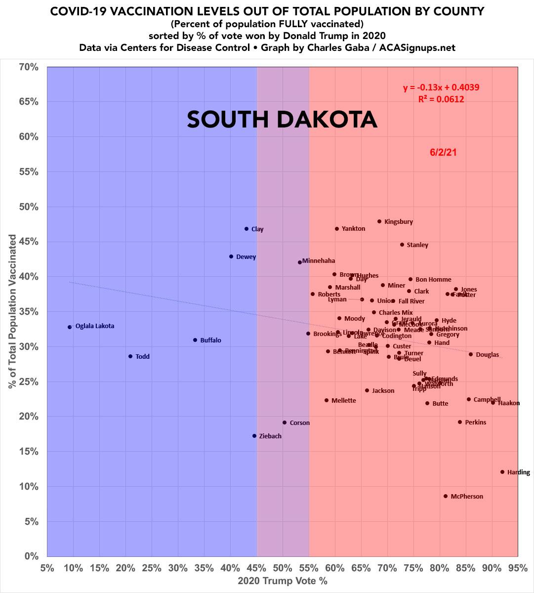 South Dakota: #COVID19 vaccination rates by county & partisan lean