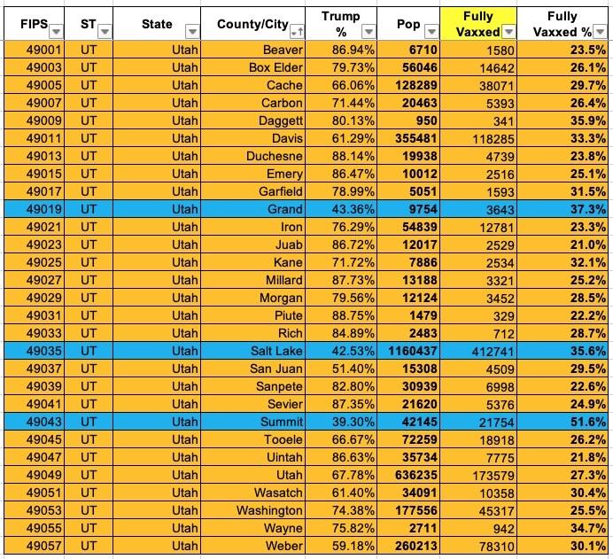 NOTE: The CDC lists ~39,000 Utah residents (3.7% of the total fully vaccinated) whose county of residence is unknown.
