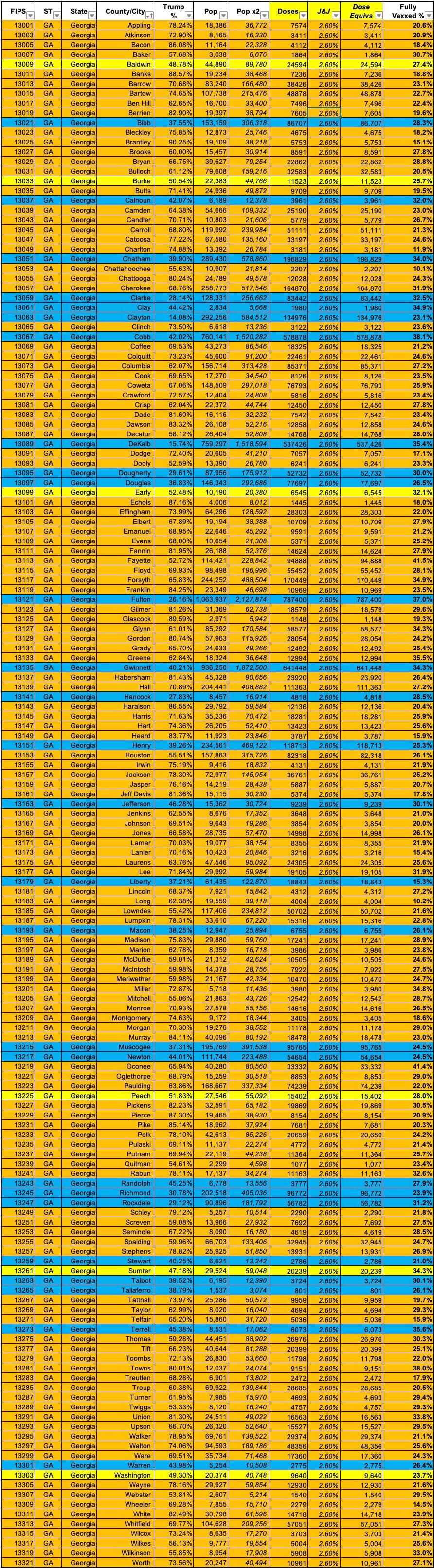 Updated: Georgia: #COVID19 vaccination rates by county & partisan lean