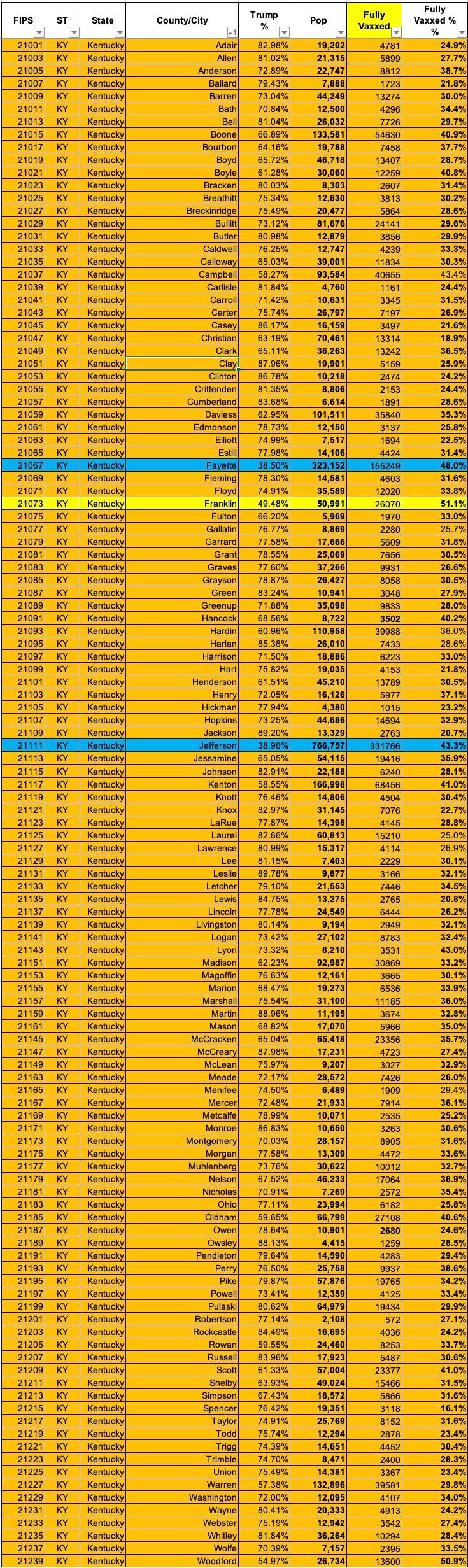 Kentucky: #COVID19 vaccination rates by county & partisan lean