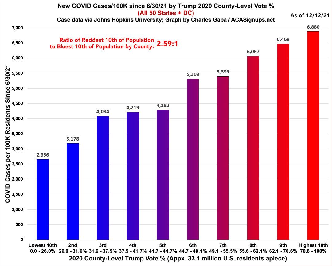 As you can see, case rates since June are twice as high in the least-vaccinated tenth of the country than in the most-vaccinated tenth.