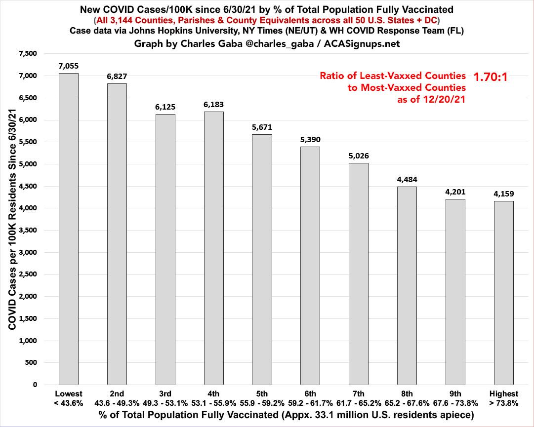 Case rates since June are now 1.7x higher in the least-vaccinated tenth of the country than in the most-vaccinated tenth, down from twice as high just a week ago.