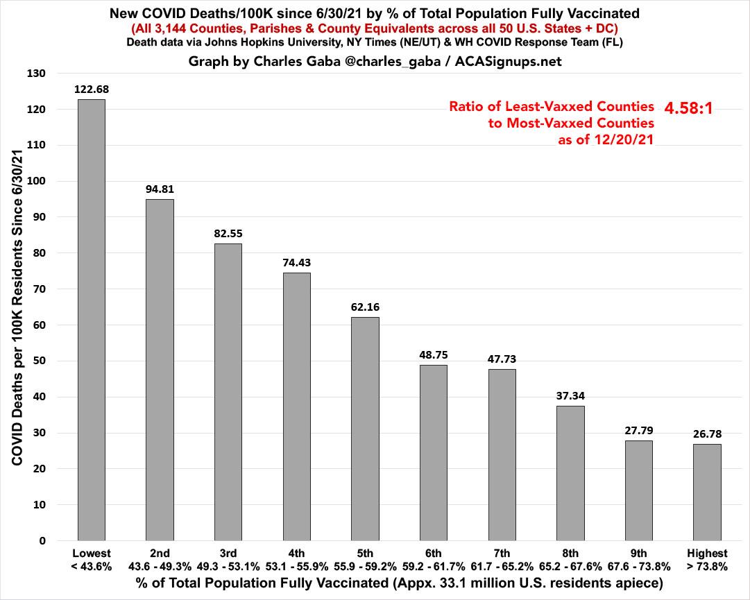 Death rates in the least-vaxxed tenth since June are now 4.6x higher than in the most-vaxxed tenth, up from 4.5x higher just a week ago: