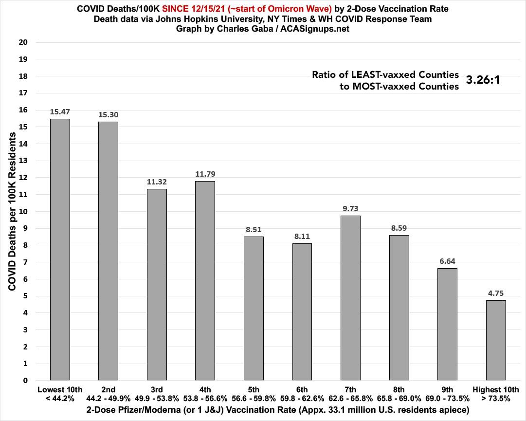 ...while the death rate over the past 3-4 weeks remains nearly 3.3x higher in the least-vaccinated parts of the U.S. Again, this is still significant, but far less so than the 4.8x ratio during the Delta wave: