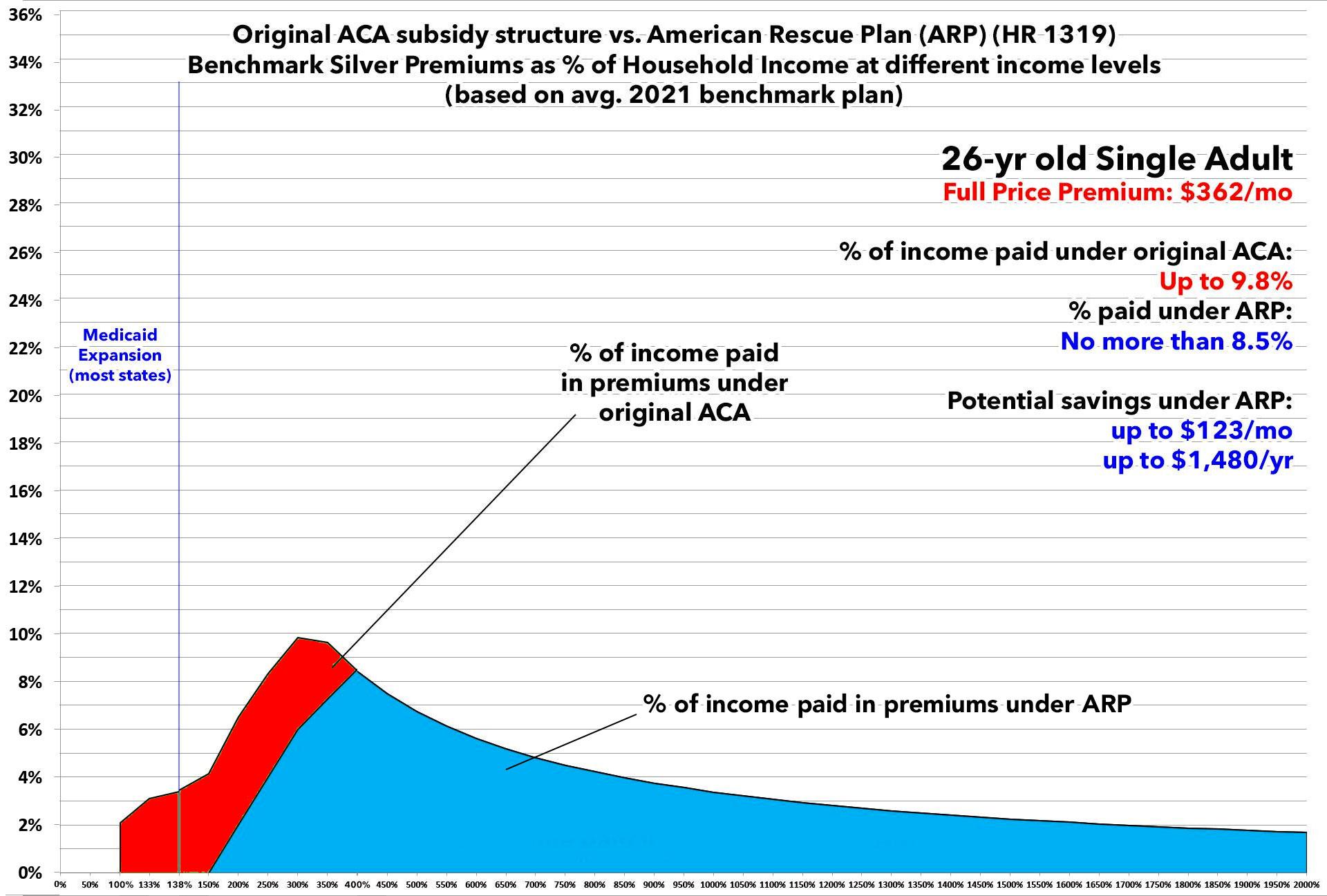 In this version I'm using the actual Advanced Premium Tax Credit (APTC) table under the American Rescue Plan, and I'm cutting out all references to the other two tables to avoid confusion.