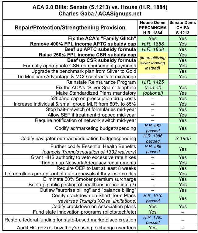 Once again: Donald Trump slashed HealthCare.Gov's marketing, outreach and navigator budgets by around 90% over the past few years, hurting enrollment and causing a lot of confusion. This was done via regulatory power. H.R.'s 987 and 1386 (which would codify proper funding levels for both as well as requiring that the money be used for its intended purpose) both passed the House earlier this year, and again, are included in the Senate ACA 2.0 bills (one of them is part of a separate bill instead for some reason, S.1905).