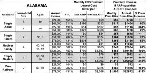 With this in mind, below I've posted tables comparing the net premiums (after federal tax credits) with & without ARP subsidies for various households at various income levels for all 50 states plus DC.