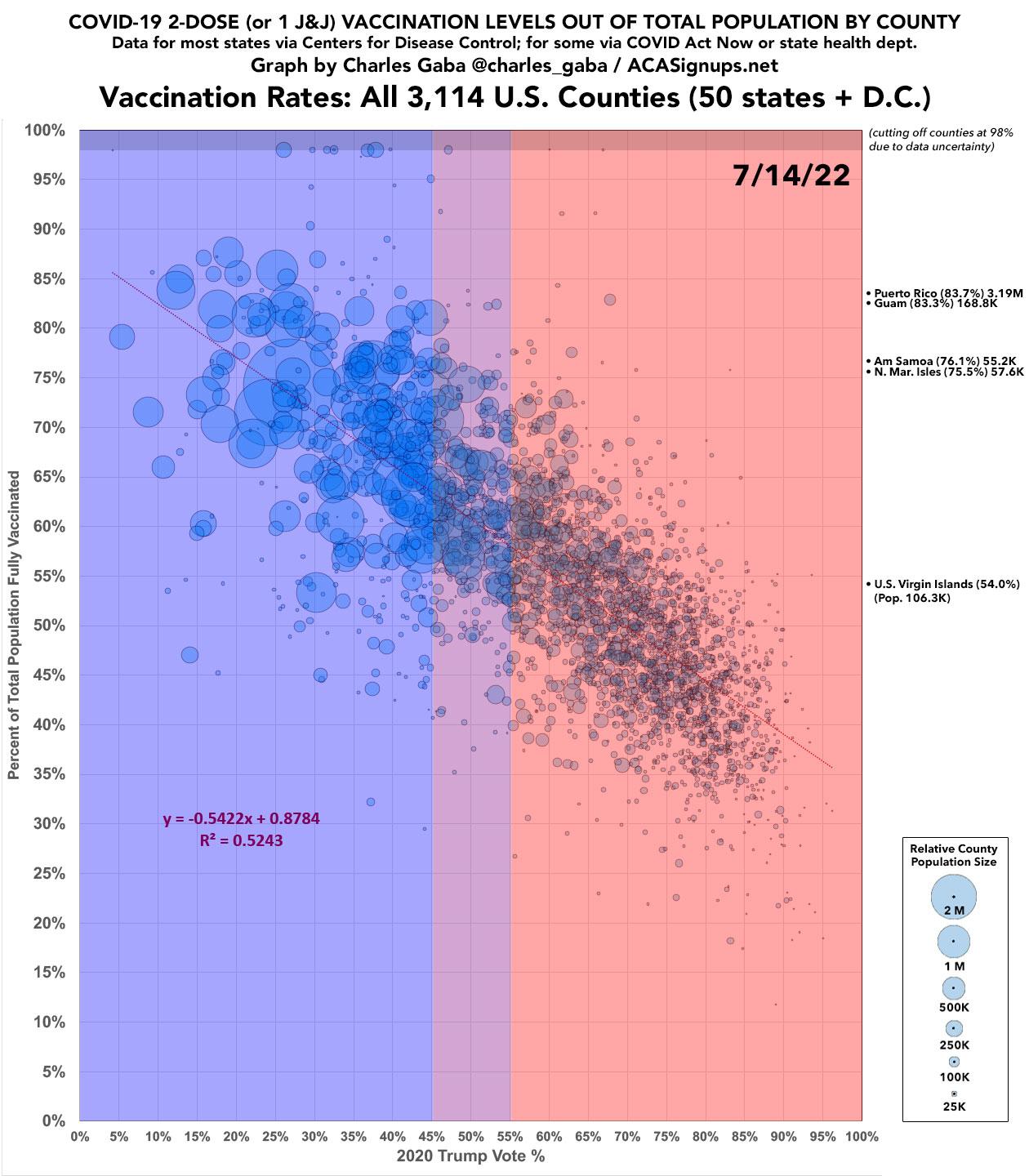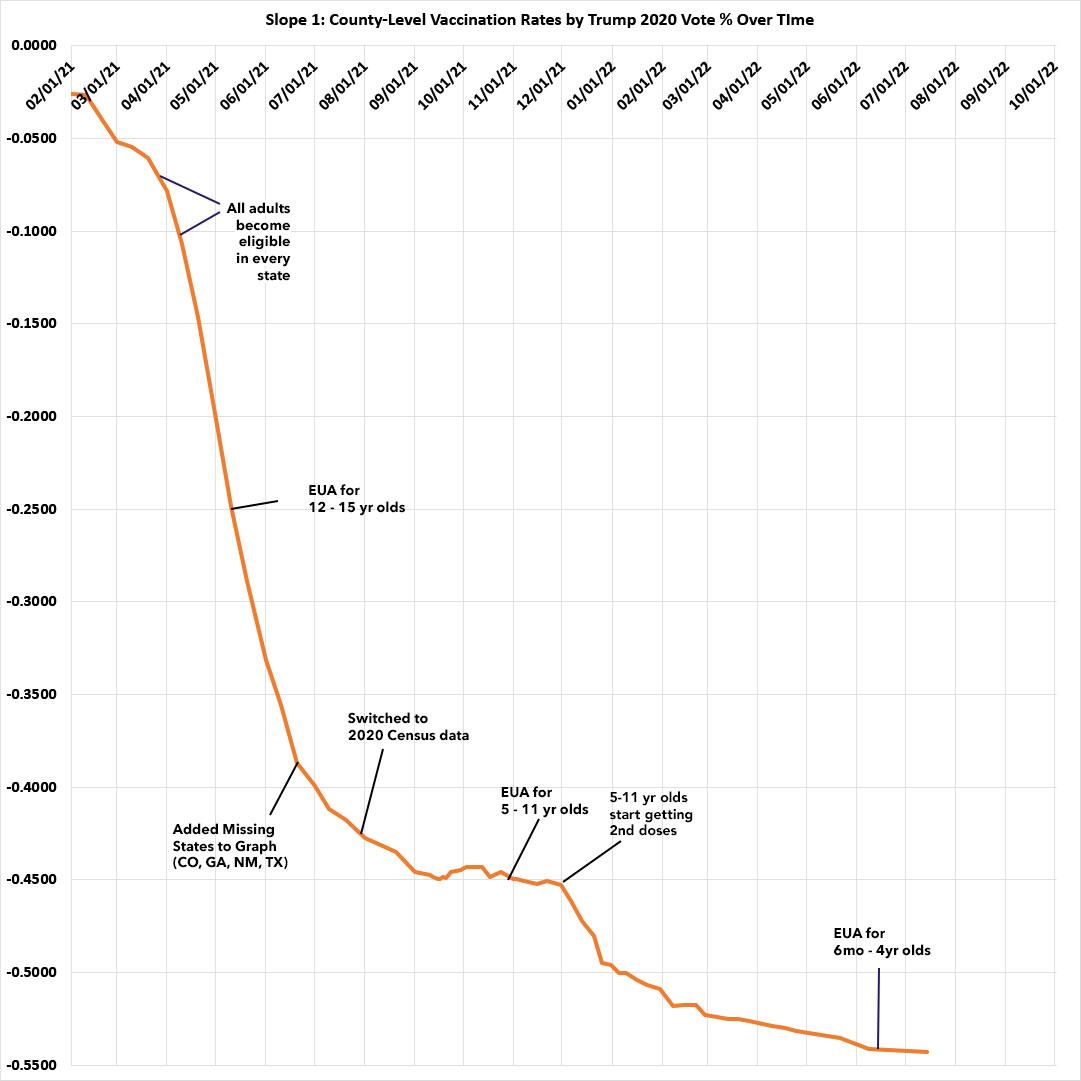 July Update: County-level #COVID19 vaccination levels by Partisan Lean