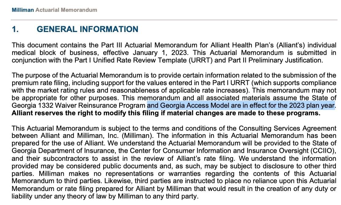 ...while Alliant Health Plan, with 5.8% of Georgia's individual market, seems to assume it will be in place: