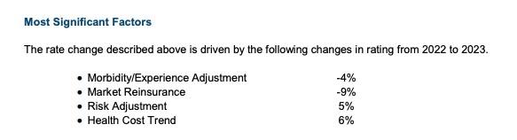 It's important to note that the ~12% reduction in unsubsidized premiums appears to have already been baked into the preliminary 2023 rate filings posted in July: