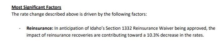 Idaho: Reinsurance waiver approved, should reduce unsubsidized premiums by ~12% vs. w/out the waiver
