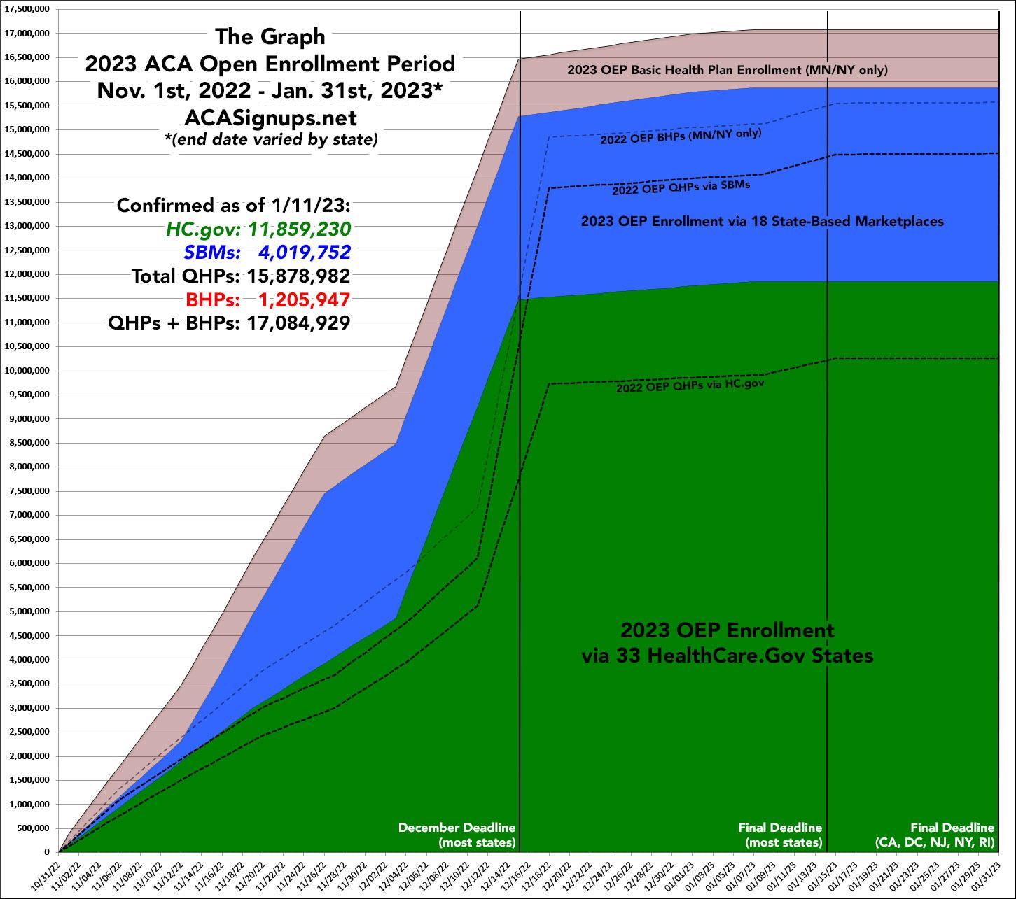 In fact, total 2023 enrollment is nearly 10% higher so far than final 2022 OEP enrollment last year...and again, there's still up to 3 weeks left for people enroll for coverage starting February 1st this year.