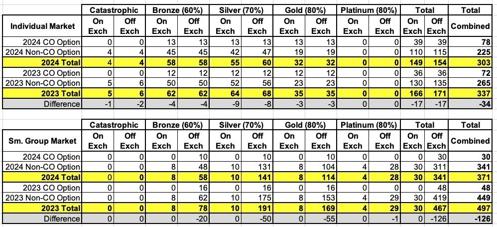The most noteworthy developments below are that in addition to Friday, Oscar and Bright Health Plans all leaving the Colorado market (as documented/reported on several times earlier this year), it looks like Anthem is reducing its offerings on the individual market, while Aetna and Humana both appear to be dropping out of the states small group market.