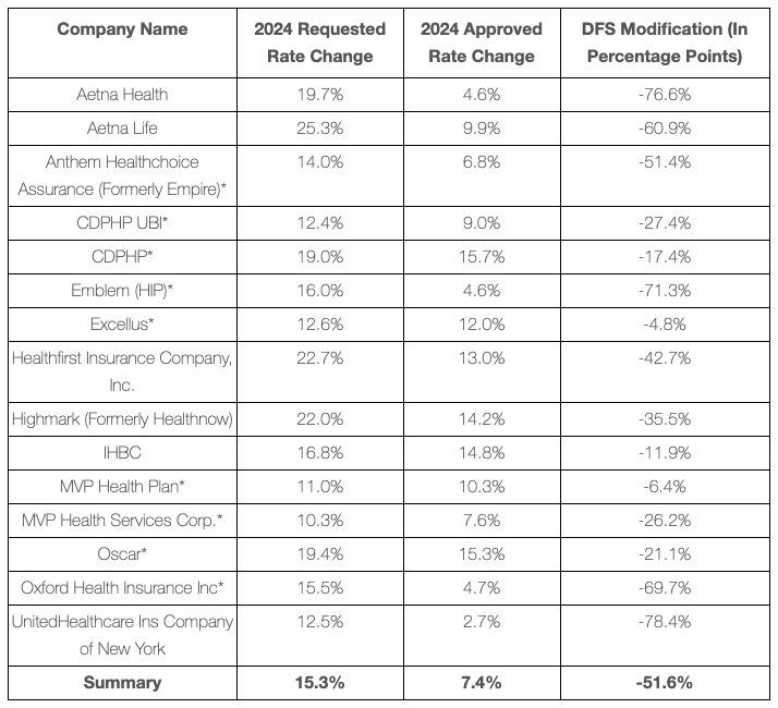 Well, today NY DFS has published the final/approved rate changes for 2024...and lo & behold, my caveat proved completely on point: