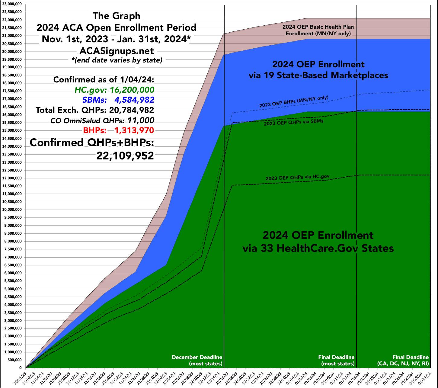 And again, that still doesn't include most of the state-based exchange enrollees since mid to late December, nor does it include any of the additional enrollees in any state from now through the end of Open Enrollment, which ranges anywhere from January 15th to January 31st depending on the state.