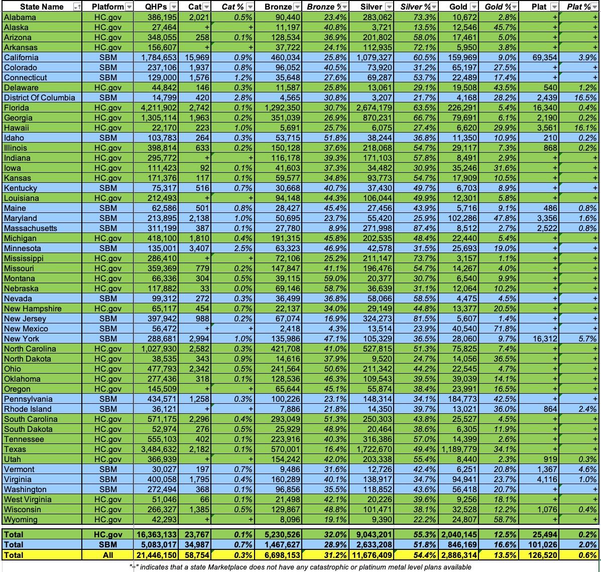 In any event, of the other three levels of ACA exchange plans, 31.2% chose Bronze, 54.4% chose Silver and the remaining 13.5% chose Gold plans this year nationally. I'm happy to see that Gold plans have inched upwards a bit from 11.9% last year.