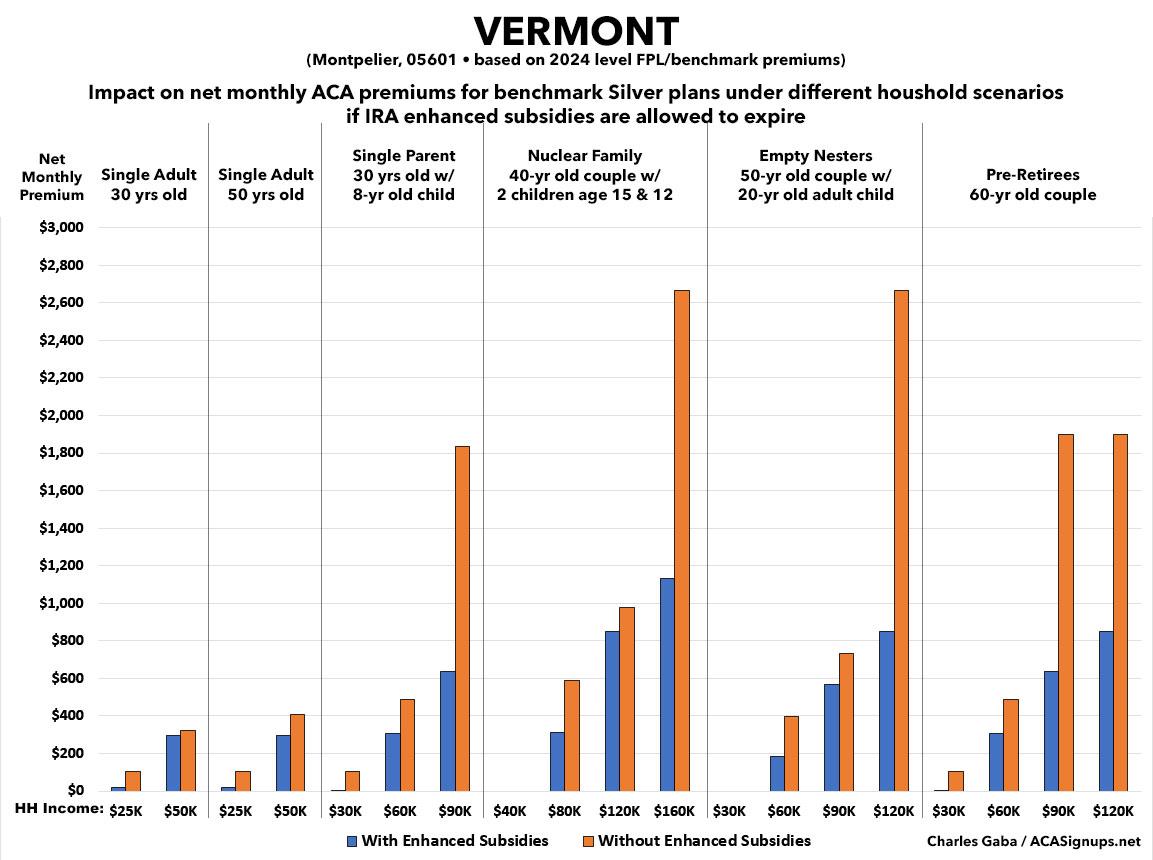 That's the macro level, however. As I did a couple of years ago when the subsidies were originally at risk of expiring in 2023, I decided to run the numbers myself to get an idea of just how much enrollees real-world health insurance premiums would go up in the event the ARPA/IRA subsidies are indeed allowed to expire at the end of next year.