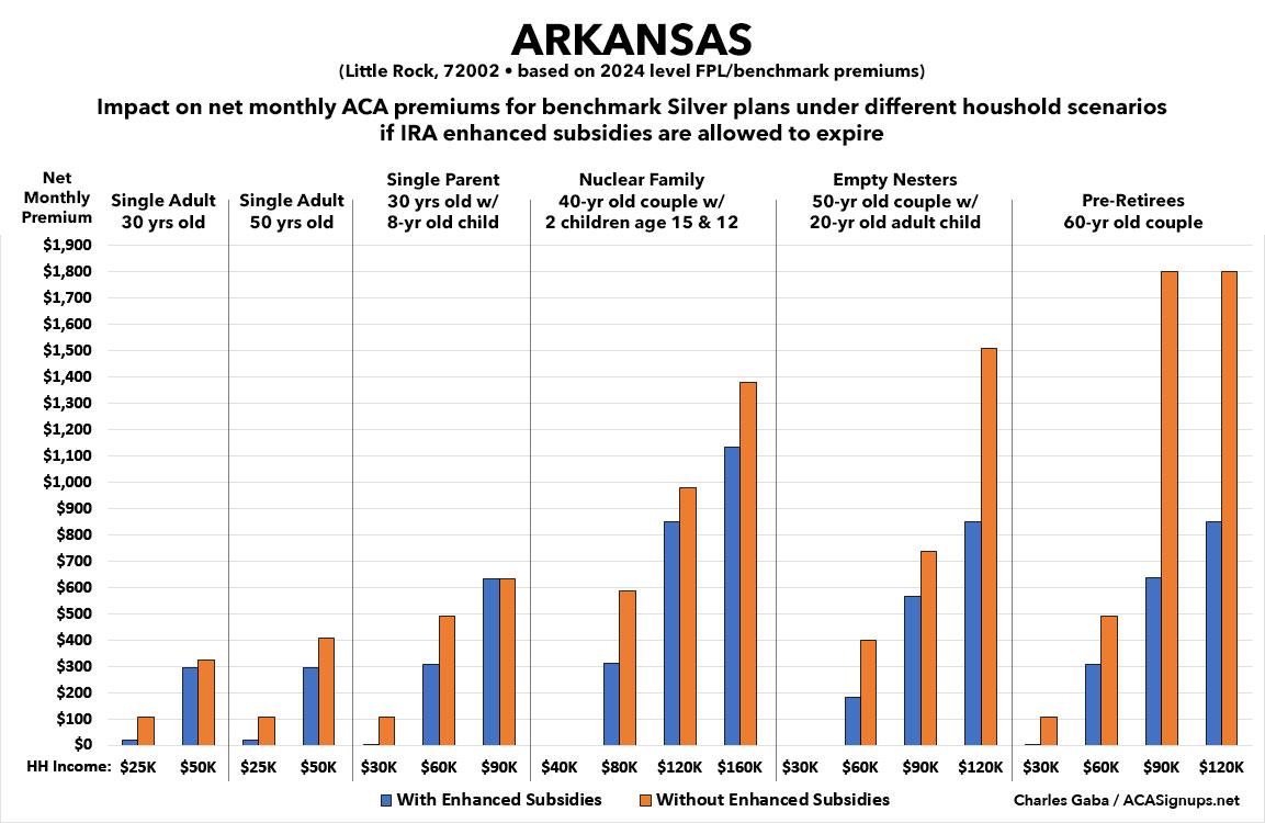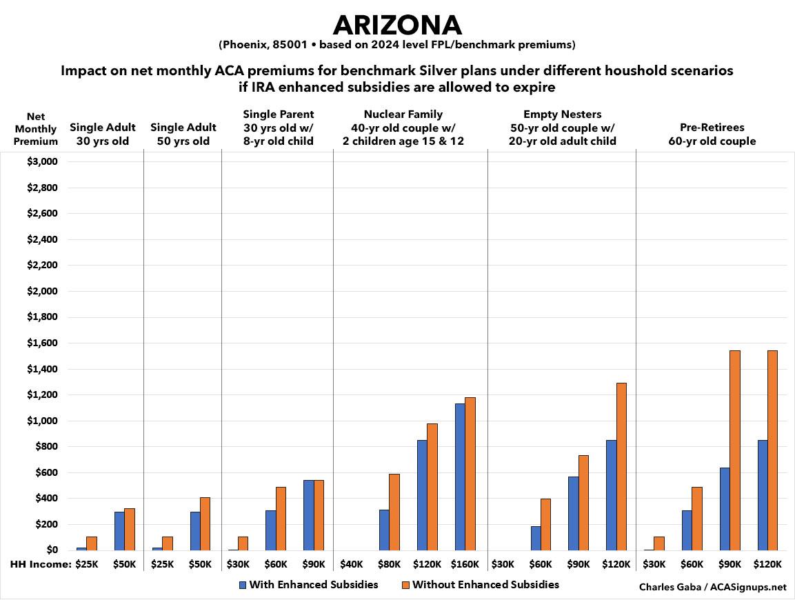 That's the macro level, however. As I did a couple of years ago when the subsidies were originally at risk of expiring in 2023, I decided to run the numbers myself to get an idea of just how much enrollees real-world health insurance premiums would go up in the event the ARPA/IRA subsidies are indeed allowed to expire at the end of next year.