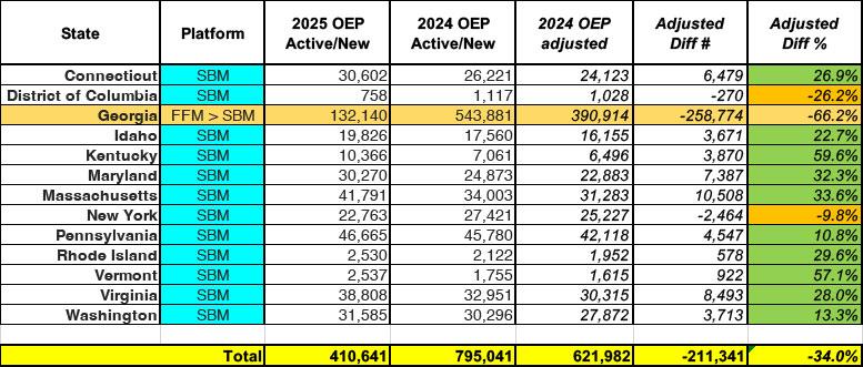 As for the 13 missing states, according to the last CMS snapshot report they were running 34% behind the same point last year...except that a) this only included the first 23 days of 2025 OEP, and b) this didn't include auto-renewals.