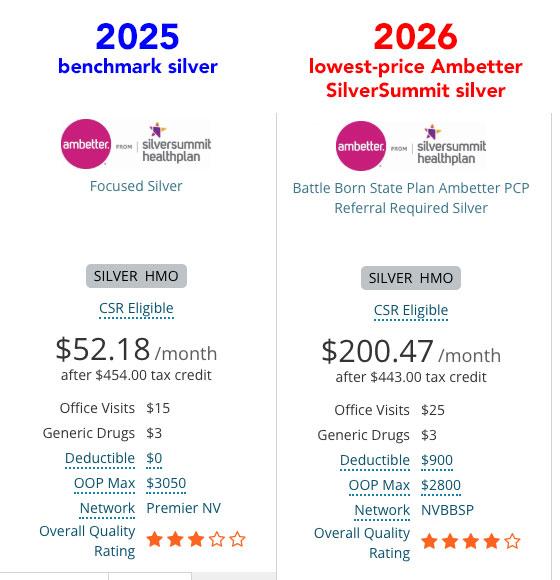 In 2026, the benchmark plan changes from Ambetter to a Renown from Hometown Health, but the lowest-priced Ambetter Silver HMO is gonna run $200/month.