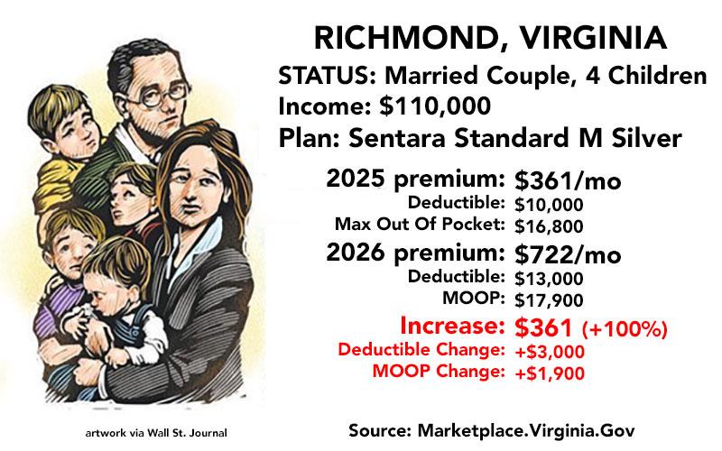 Anyway, the benchmark plan in 2025 is a Sentara Standard Silver plan, for which they're paying $361/month. Next year, however, the lowest-priced Sentara Silver plan will cost them $722/month... exactly twice as much.
