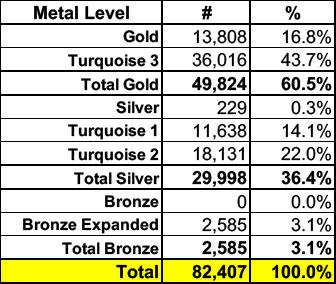 Thanks to the combination of New Mexico's state-based subsidy program and their robust Premium Alignment pricing policy, over 60% of enrollees have Gold plans and another 36% have dramatically enhanced Silver coverage, with a mere 3% stuck in Bronze plans.