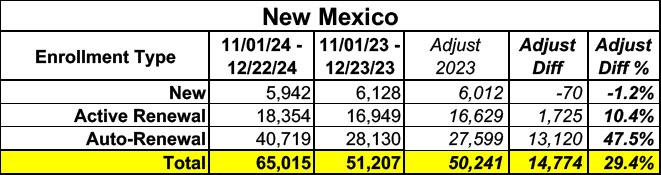 Not only is New Mexico's exchange enrollment up a whopping 28% vs. the same point last year, it's 20% higher than the 2024 OEP's final total of 56,472.