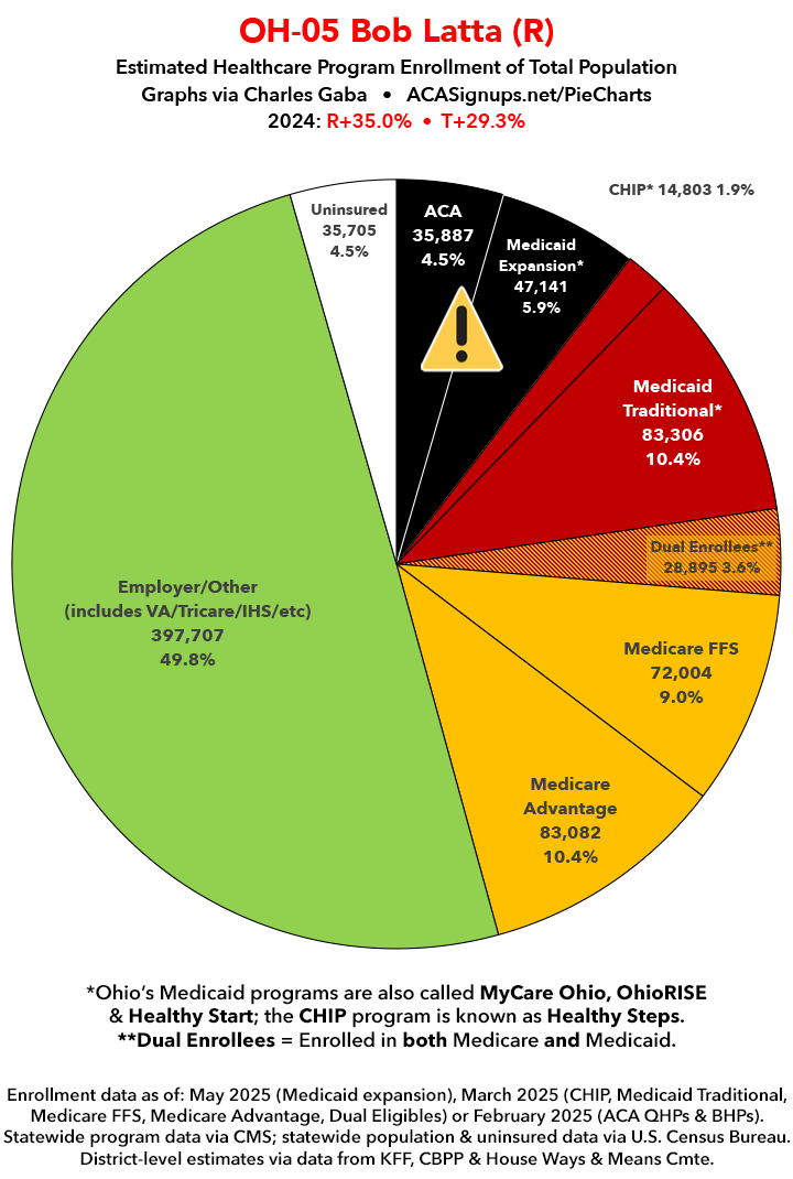 UPDATE 7/10/25: I've updated the web versions of the graphics with the most up-to-date enrollment data I have access to. The black sections w/the ⚠️ symbol are those most at risk of losing healthcare coverage due to H.R. 1, the "One Big Beautiful Bill Act" (aka the #MAGAMurderBill).