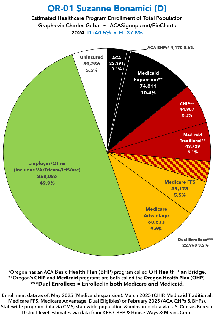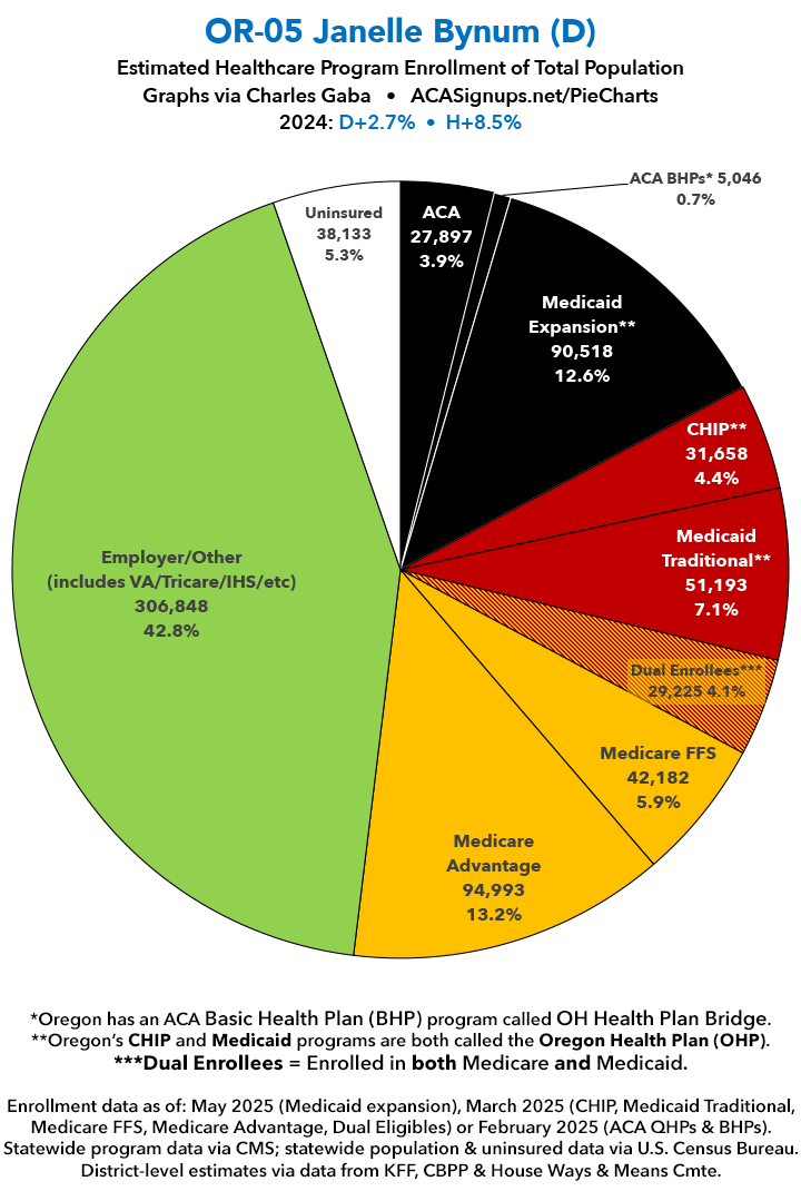 UPDATE 7/10/25: I've updated the web versions of the graphics with the most up-to-date enrollment data I have access to. The black sections w/the ⚠️ symbol are those most at risk of losing healthcare coverage due to H.R. 1, the "One Big Beautiful Bill Act" (aka the #MAGAMurderBill).