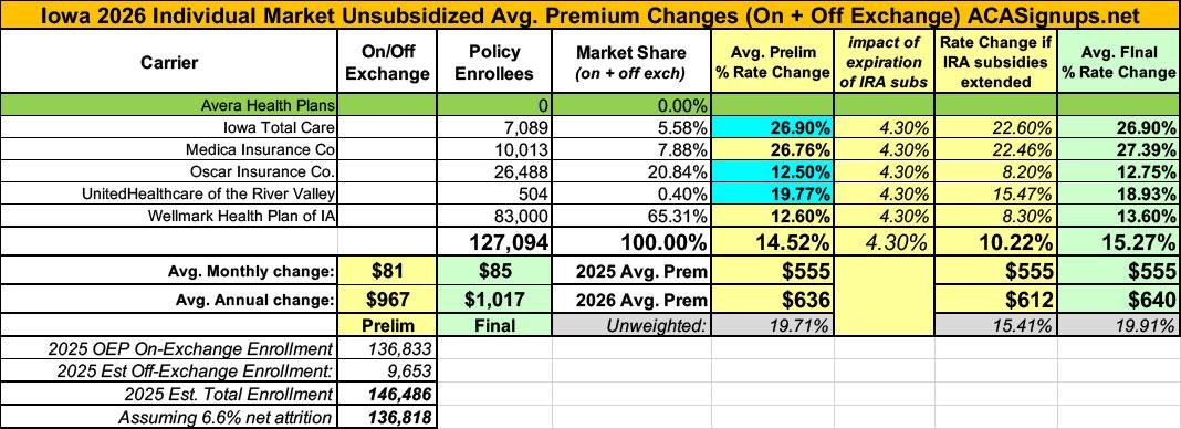 In Iowa specifically, all of this will result in average gross premiums hikes of 15.3%.