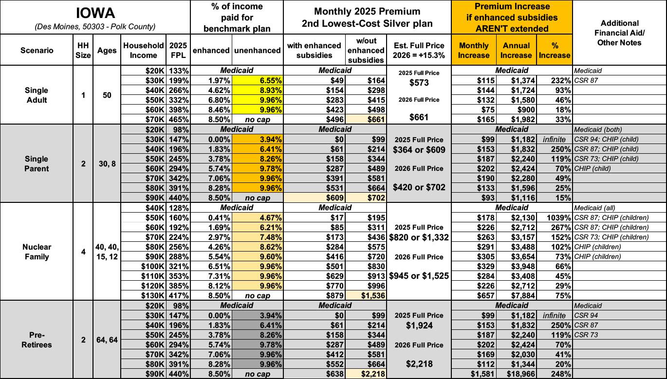 I decided to run the numbers myself to get an idea of just how much the combination of expiring IRA subsidies and the CMS "Affordability/Integrity Rule" will cause net premiums to increase starting in January 2026.
