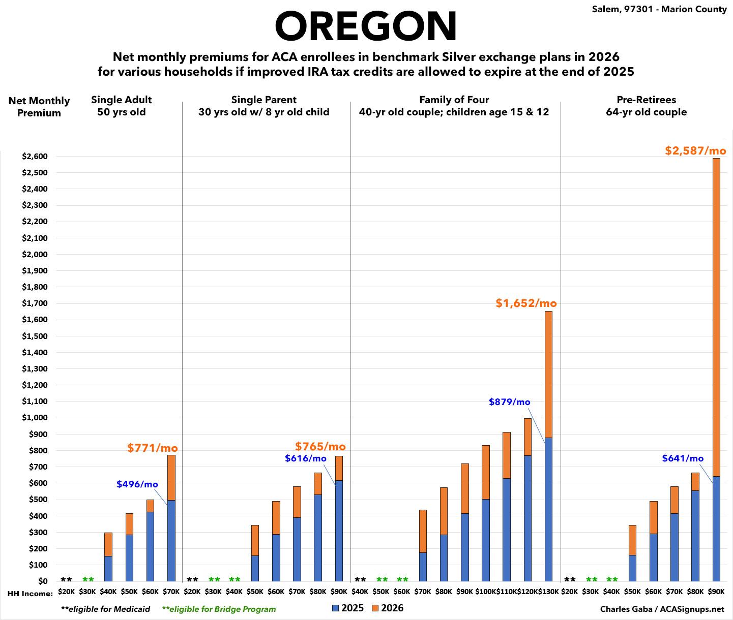 NOTE: Oregon also has around ~32,000 residents enrolled in their Basic Health Plan (BHP) Program, the "Bridge Program." I'm uncertain as to how they'll be impacted by all of this.