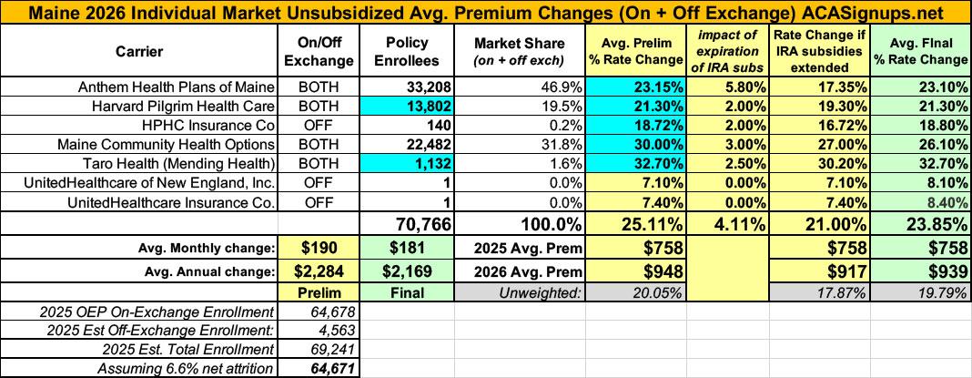 UPDATE 9/4/25: The Maine Insurance Dept. has published the final, approved 2026 rate changes for both the individual and small group markets.