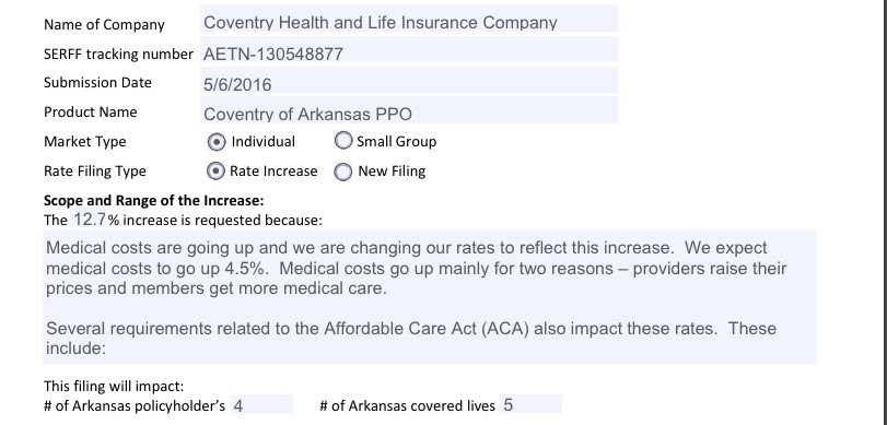 In mid-August, all of the carriers that offer plans in the Arkansas exchange proposed new rate increases for 2017, all of which were lower than their initially filed rates. Rate increases were then reduced even further for QualChoice and QCA: